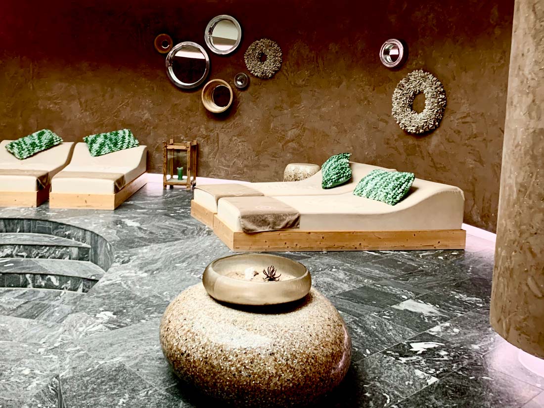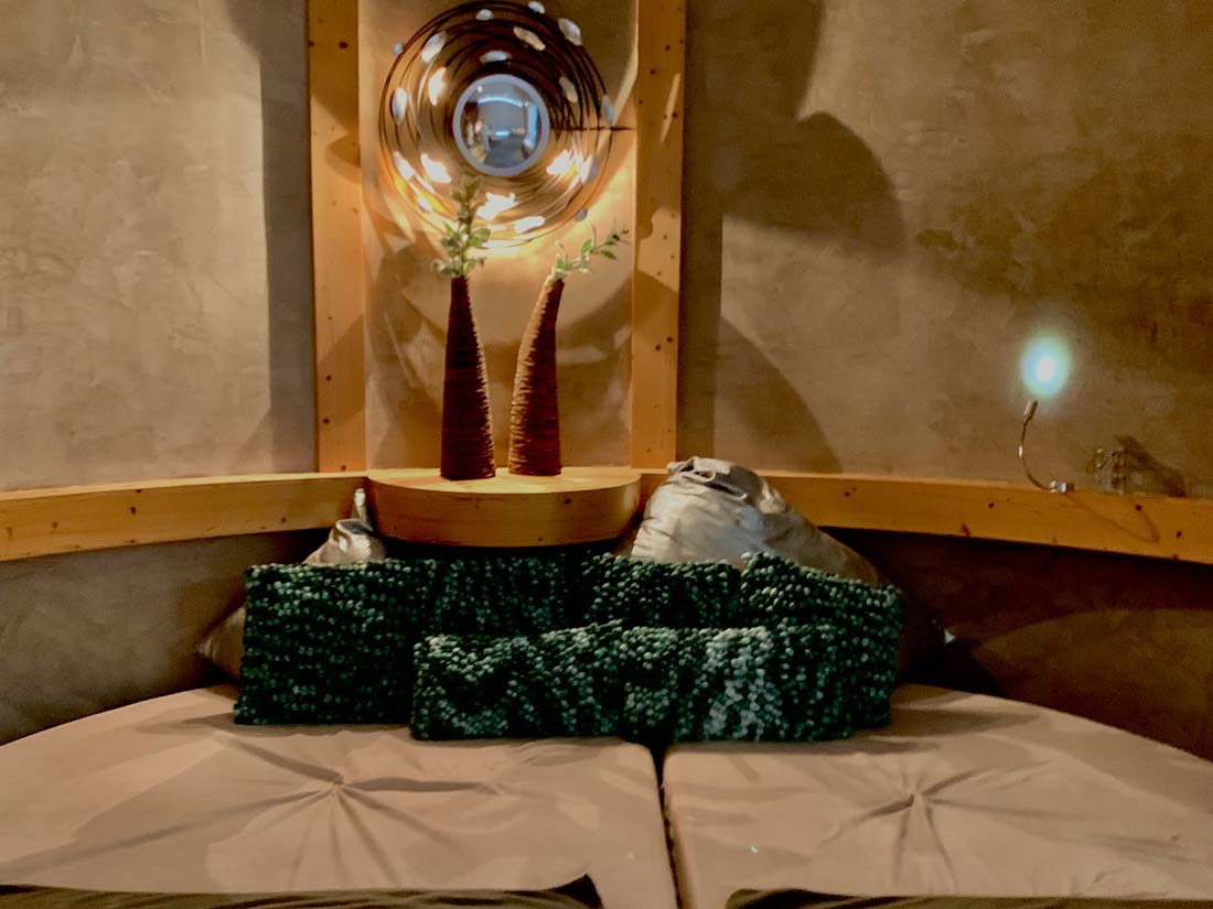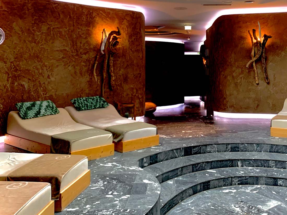 Alle Arten von Saunen und Räumen aufzuzählen würde hier den Rahmen sprengen aber wir hätten sehr gerne den Klangschalenaufguss in der 3-D Bergsauna erlebt, das haben wir leider nicht mehr geschafft. Die 3D Bergsauna hat eine sehr aussergewöhnliche Form und man blickt durch ein Panoramafenster direkt in die Berge. Ganz wunderbar. Auch die Sole Grotte hat einen ganz eigenen Zauber, wir waren begeistert! Die zahlreichen Ruheräume individuell gestaltet und wir wagen zu behaupten, es ist für jeden etwas dabei!