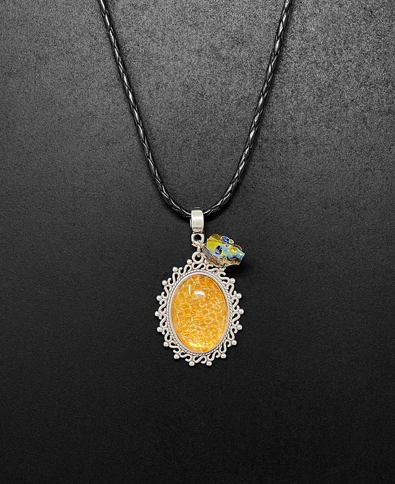- Cabochon mit Schlangenhaut, goldfarben unterlegt